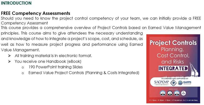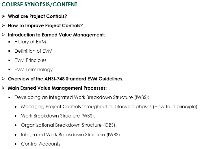 2. The Course Material is based on Earned Value Management or EVM principles.