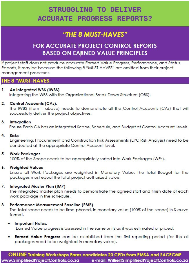 2) How to set up the Project data, for more accurate Project Controls based on EVM (Earned Value Management) principles.