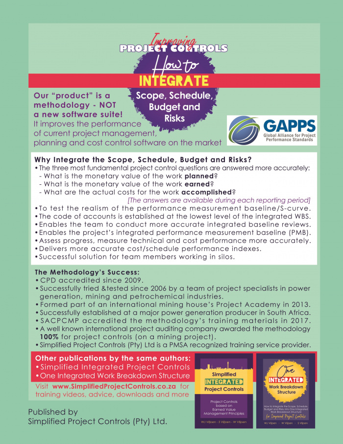 4) How to integrate the scope, schedule, budgets and EPC risks via an Integrated WBS (IWBS).